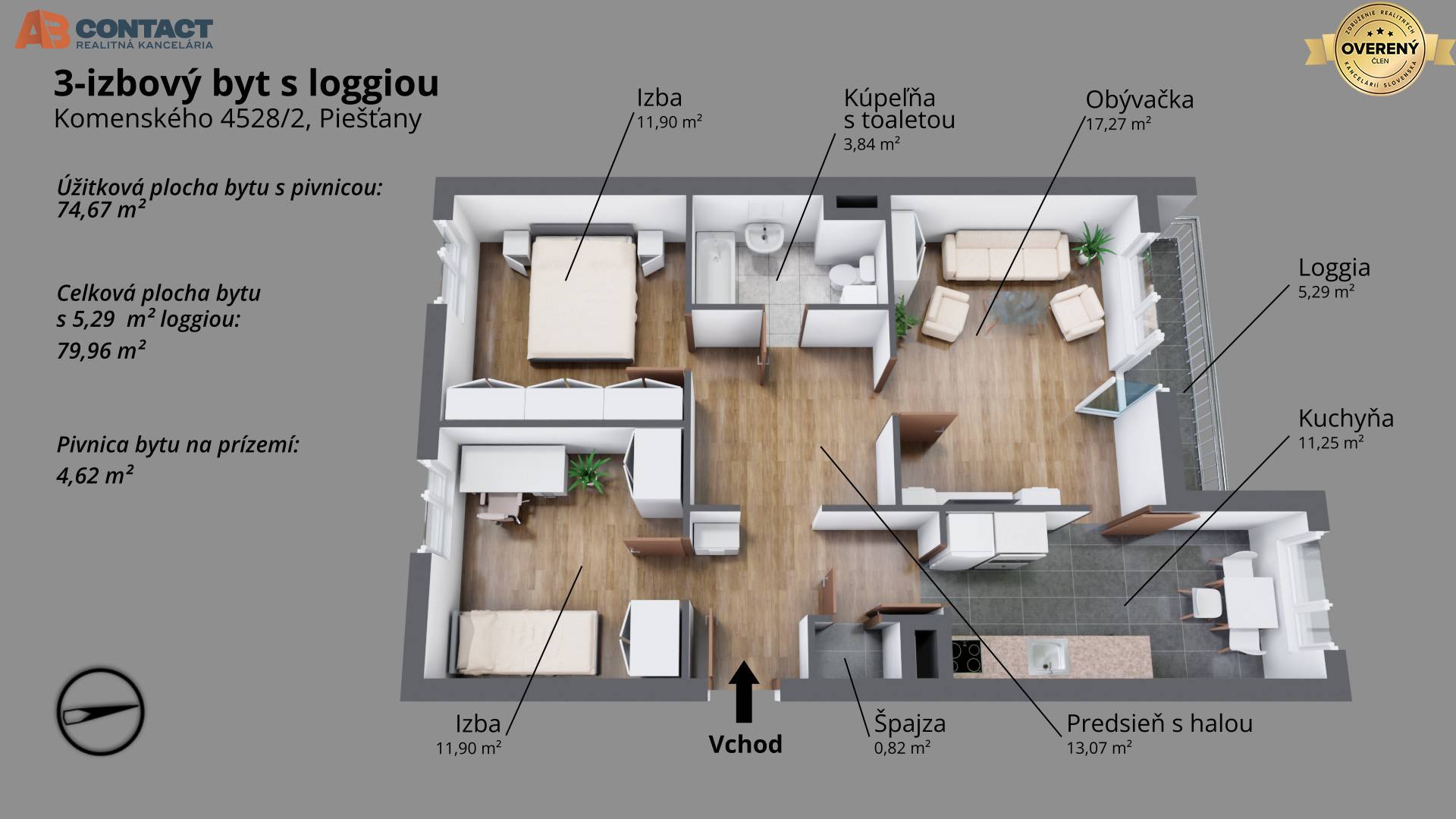 Eladó 3 szobás lakás, 3 szobás lakás, Komenského, Piešťany, Szlovákia