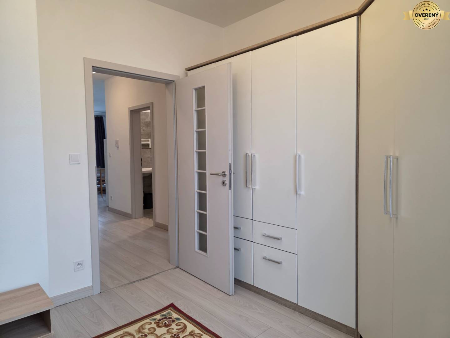 Előszoba, gyerekszoba, hálószoba erkéllyel, nappali erkéllyel, amely a konyhához kapcsolódik, fürdőszoba zuhanyzóval, külön WC.