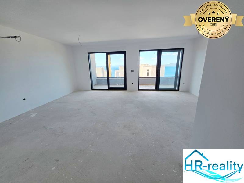 A HR – reality ingatlanügynökség eladásra kínál egy gyönyörű, három hálószobás lakást egy liftes, kisebb épület harmadik emeletén, amely az építés utolsó szakaszában van. A lakás teljes területe 95 m2, előszobából, három hálószobából (a középső déli fekvésű, erkélykapcsolattal), két fürdőszobából, egy tágas nappaliból konyhával és étkezővel, valamint egy 19,57 m2-es déli fekvésű, tengerre néző erkélyről áll. Ebben az időszakban a vevők választhatják ki az anyagokat és a belső berendezést. Lehetőség van kültéri parkolóhely vagy garázsbeálló vásárlására. Az ingatlan csendes környéken található.