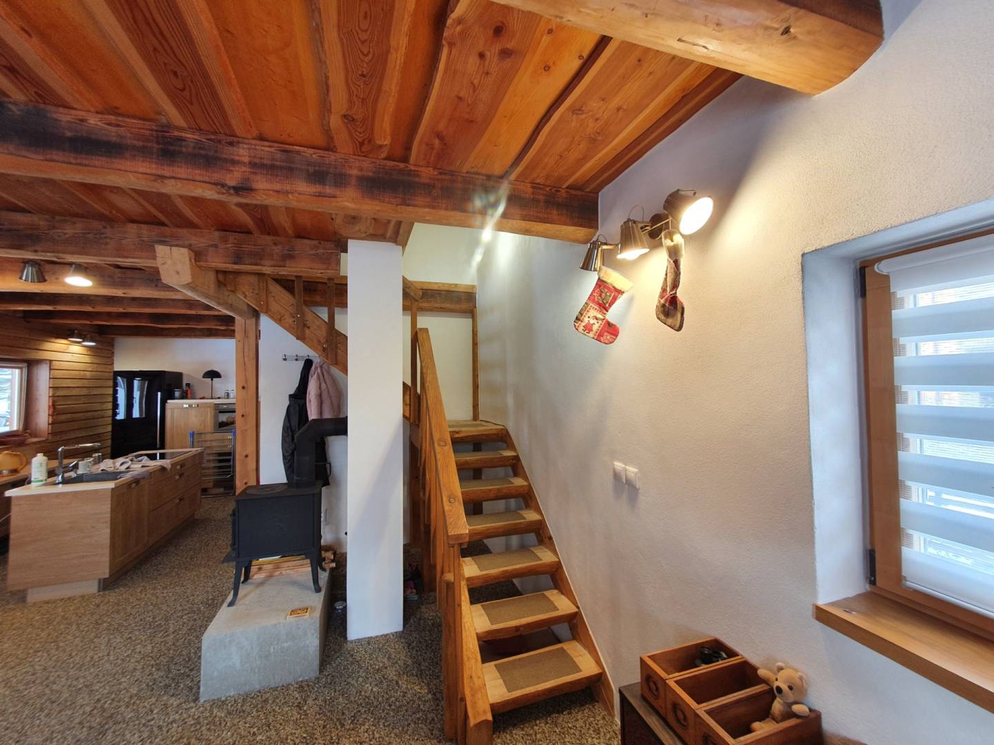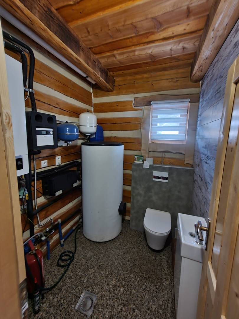Eladó egy luxus rönkház jellegű faház csendes környezetben, erdő közelében, a jellegzetes gömöri város, Tisovec szélén. Egy kétszintes, új épületről van szó, amely 2018-ban épült, a tulajdoni lap családi házként tünteti fel, és különálló garázst és fatárolót is tartalmaz. A szerkezet fa gerendákból áll, beton alaplapon, a tető rusztikus cserép alakú horganyzott lemezből készült, a ház nyugati oldalán egy tágas, fából készült terasz található, amely ülőhelyeket kínál. Az első emeleten egy nagy nappali található, amely a konyhához és étkezőhöz kapcsolódik, fürdőszoba, WC és háztartási helyiség. A konyhában egy modern konyhabútor található beépített gépekkel. A nappali belső vastag vakolattal van burkolva, fehér, a nappali és a konyha egy része fa burkolattal rendelkezik. A második emeleten, a tetőtérben két hálószoba található. A ház be van kötve az áramra, a közművezetékre, a csatornázásra és a gázra, valamint egy eredeti emésztőgödör is található a telken. A tetőn napelemek találhatók, amelyek a teljes épület melegvíz-ellátását és fűtését is biztosítják, míg a tavaszi és őszi átmeneti időszakban ez a napelemekkel történő fűtés teljes mértékben elegendő egyetlen hőforrásként. A házban fa ablakok találhatók, a fűtést padlófűtés biztosítja, amely központi gázkazánhoz csatlakozik, de az ingatlan teljes mértékben fűthető az 1. emeleten található öntöttvas fatüzelésű kályhával is, amely nemcsak a meleget, hanem a lobogó tűz látványát is kínálja. Az ingatlant távfelügyeleti kamerarendszer védi, és a szauna is távirányítással vezérelhető. Emellett eladó egy nagy, összesen 1410 m2-es telek, amelyen kisebb építészeti elemek találhatók, mint például fedett ülősarok, kerítés, kültéri szauna és kerti tó, amely télen korcsolyázásra alkalmas jégpályává alakul. Az átadott telek közelében található egy erdészeti skanzen, amelyen egy játszótér található látnivalókkal, a skanzen fotódokumentációja a hirdetés mellékletében található (az utolsó 3 fotó). Megjegyzés: az eladás magában foglal egy építés alatt álló üdülőépületet is, amely elektromos árammal van bekötve, saját fűtéssel, fürdőszobával és WC-vel rendelkezik, és egy különálló épületben egész évben lakhatóvá válik, például vendégek kereskedelmi szálláshelyként is használható.