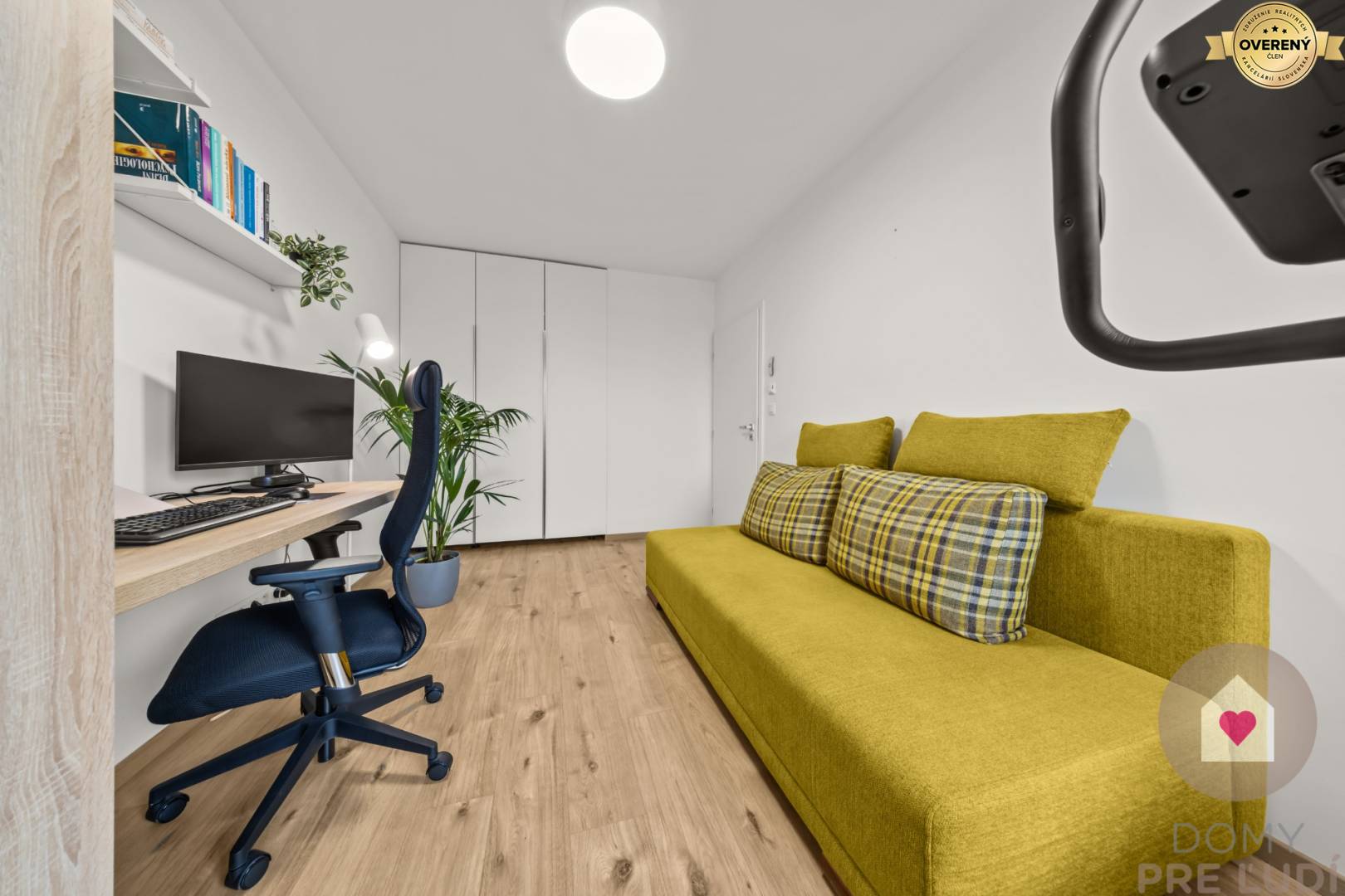 - egy második külön hálószoba kanapéval, beépített szekrény a teljes fal mentén, szekrénnyel és íróasztallal